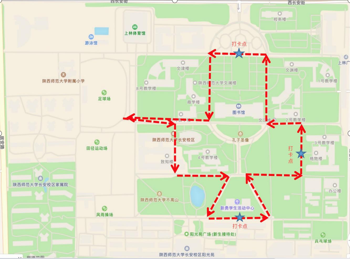 1.运动员根据组委会所设定的路线图进行打卡(共设3个打卡点),每个打卡点领取一张签到卡,最终每位运动员应获得3张签到卡则视为完成比赛。