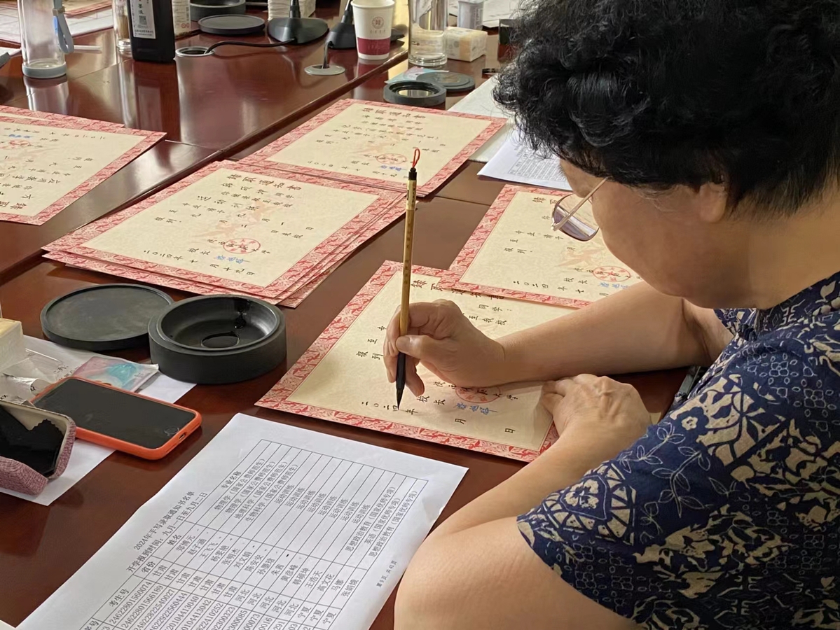 “金榜题名是人生三喜之一,作为一个老教师,每一次看到新同学怀着求学的目标报考我们陕西师大,我会感到非常欣慰和自豪,也为我们国家后继有人,能够不断发展感到高兴。”郭欣根说。从2007年至今,退休老教授郭欣根共参与过7次书写工作,每一次开笔时,他的心中都会有不同的体会与感慨,他期望通过朴素的笔墨将这份喜悦与祝福传递给新生。