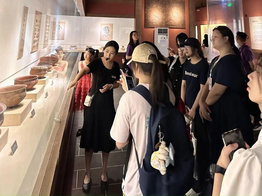 在西安半坡博物馆,讲解员为大学生们介绍了半坡人居住的房屋、半坡村落布局以及半坡遗址发掘等情况,以及半坡人的模样、半坡聚落的生态环境、生产工具的制作以及生活方式等。大家认真聆听,对展柜中陈列的各式各样的装饰品、精美别致的彩陶器、耐人寻味的刻画符号等赞叹不已。在史前工场活动场地,大学生们参与体验了博物馆经典教育项目“钻木取火”。该教育项目是西安半坡博物馆研学教育活动常设项目之一,深受观众的喜爱。大学生们踊跃体验这种古老的取火术,感受史前文化的魅力。