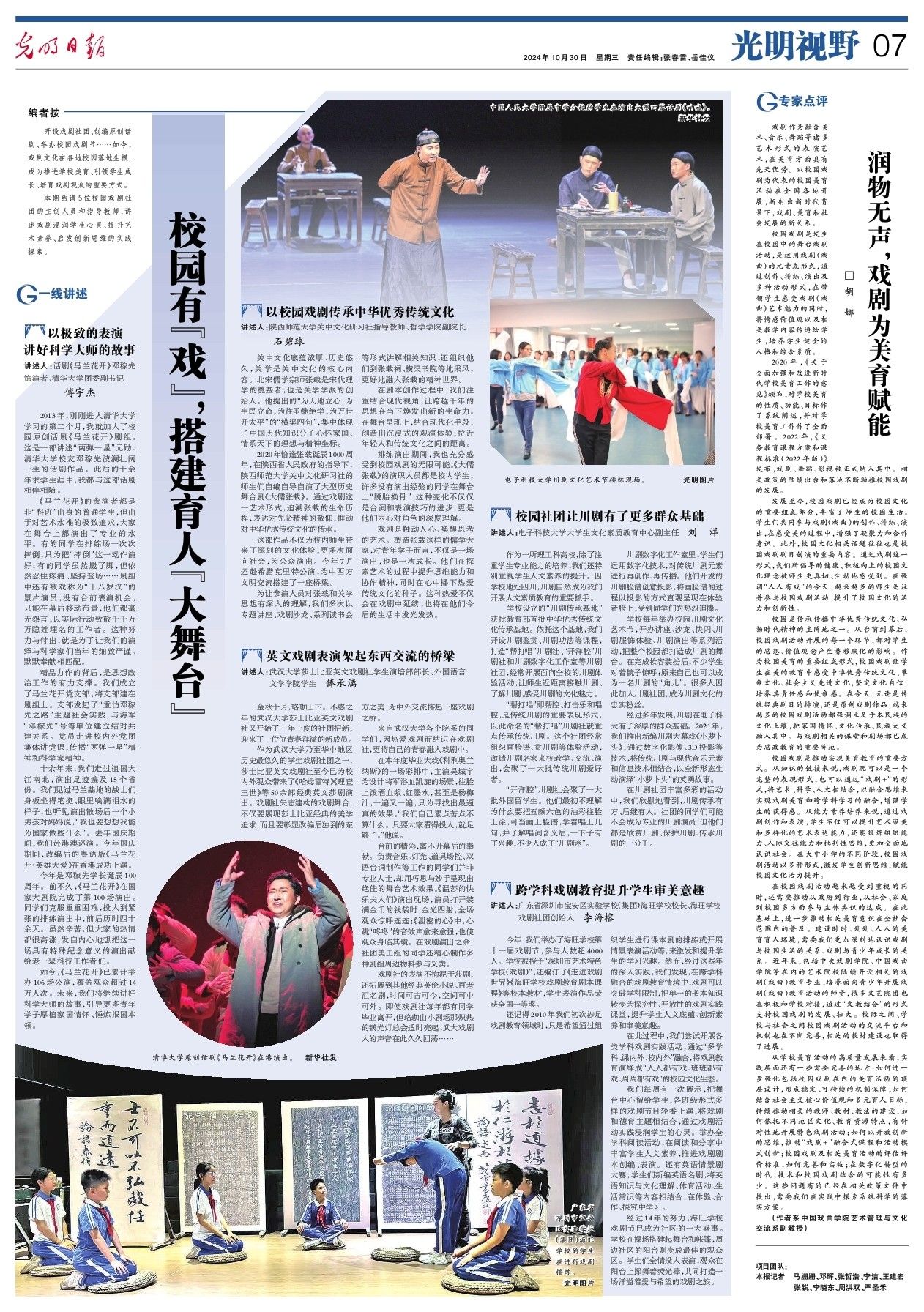 开设戏剧社团、创编原创话剧、举办校园戏剧节……如今,戏剧文化在各地校园落地生根,成为推进学校美育、引领学生成长、培育戏剧观众的重要方式。